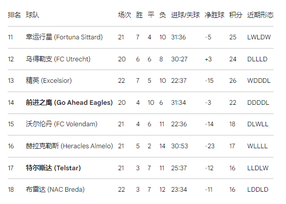 2026-02-11平博体育规则,平博体育,平博真人,平博棋牌,平博彩票,平博电竞,平博百家乐,平博电子,平博游戏,平博体育官方网站,平博体育官网入口,平博体育网址,平博体育靠谱吗,平博体育app,平博app下载,平博投注,平博下注,平博官方网站,平博最新入口,平博体育平台推荐,平博体育平台赛事,平博赛事,平博在线体育博彩,平博足球博彩,平博足球投注,平博娱乐场在2025-2026赛季荷甲联赛进入第二循环的关键节点,前进之鹰(Go Ahead Eagles)与特尔斯达(Telstar)的对决已超越了单纯的积分争夺,演变为一场关于心理复原力与保级生存权的深度博弈。前进之鹰作为德文特(Deventer)的骄傲,正处于一个极其动荡的阶段。在连续两个赛季进入联赛上半区并于上赛季赢得俱乐部66年来首座重要奖杯——荷兰杯(KNVB Beker)后,球队本赛季的表现出现了显著下滑 。截至目前,他们在20场联赛中录得4胜10平6负,积22分排名第14位,距离降级区仅有6分的微弱缓冲 。这种从“杯赛之王”到“平局大师”的身份转变,折射出主帅梅尔文·博埃尔(Melvin Boel)在管理多线作战压力与伤病潮时的战术困境 。